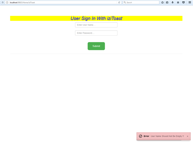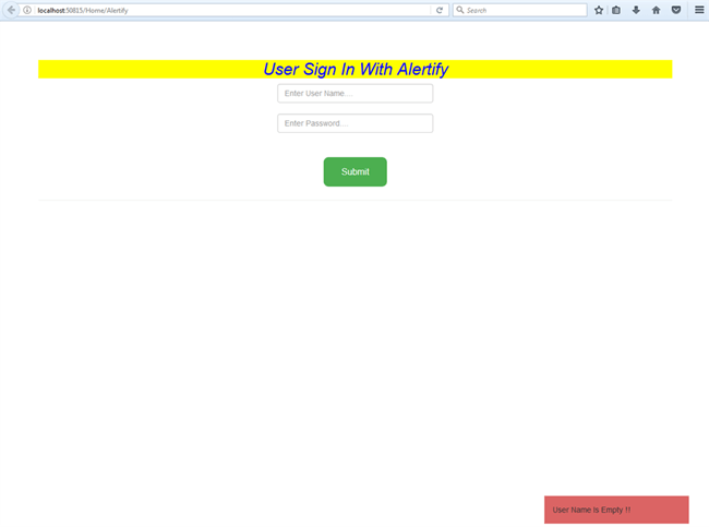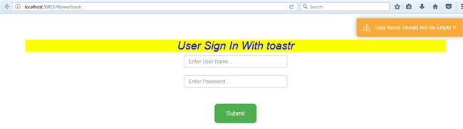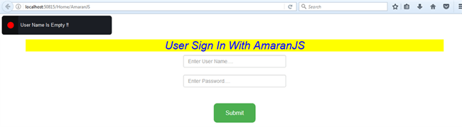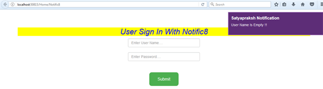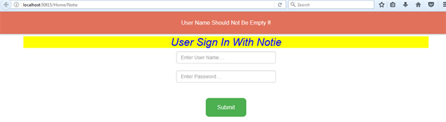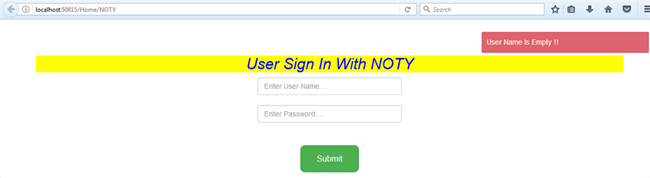 - notie.alert({ type: 3, text: 'User Name Should Not Be Empty !!' })