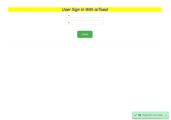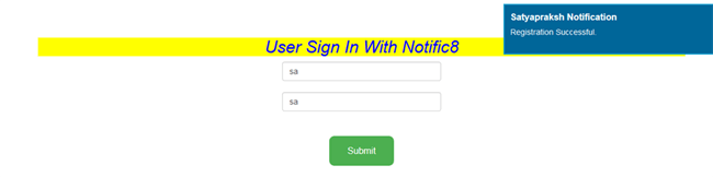 - notie.alert({ type: 1, text: 'Registration Successful.' })