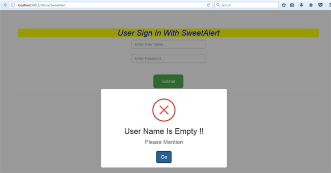 - sweetAlert("User Name Is Empty !!", "Please Mention", "error");