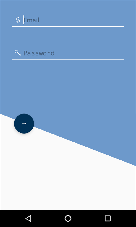 - <android.support.design.widget.FloatingActionButton android:id="@+id/btnLogin" android:layout_width="wrap_content" android:layout_height="wrap_content" android:layout_gravity="top" android:layout_marginStart="40dp" app:backgroundTint="#003157" app:srcCompat="@drawable/ic_right_arrow" /> </FrameLayout>