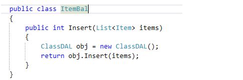 Now, add a class file in the Data Access Layer, Item Dal.cs, and use the insert code in SQL Server.