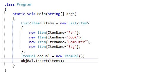 In our Presentation Layer, we will create a list of the items and pass it to the Business Layer.