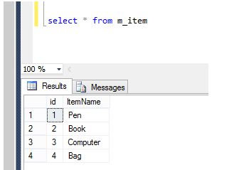 Run the project and see in M_item table, where the data is inserted successfully.