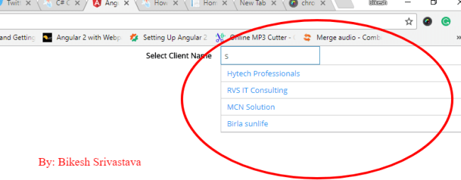 According to this image type, any word or character in the textbox result will show. Data is coming from database according to search word 's'. I hope, your application is working and I am sure you learned a simple trick to make the textbox auto-complete using Angular and TypeScript. If you are still facing any error or issue, download the attached project.