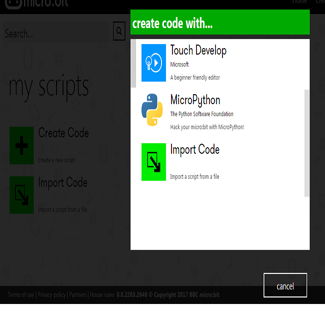 official site. Click on "Create code" and then choose "MicroPython".