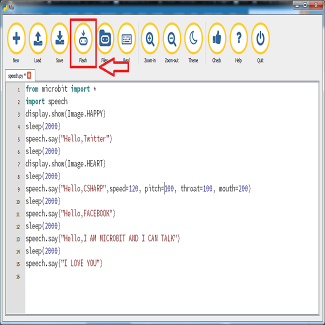 . Now, if we will run this code, our micro: bit will speak