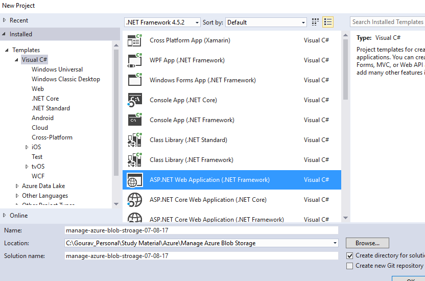 Implementation – Create a simple web application and install “Azure Storage” package using VS