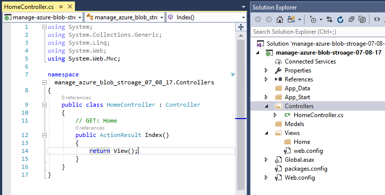- Implementation – Create a simple web application and install “Azure Storage” package