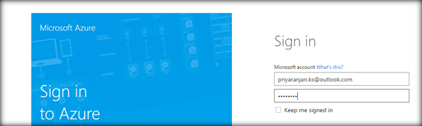 In order to do it, sign in to your Azure subscription, using your Azure credentials. In my case, it is [email protected].