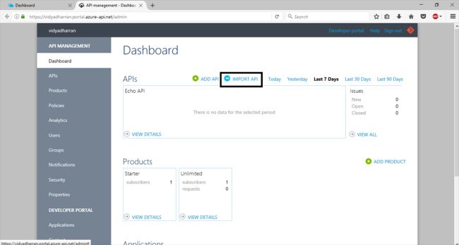 An API can be created or can be imported and in this article, I will explain about importing API and I have uploaded a link for the source of a simple API like calculator and it is available from the link http://calcapi.cloudapp.net/calcapi.json