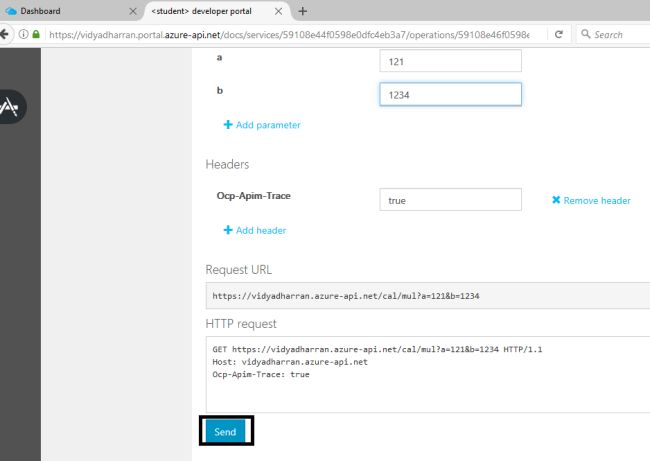 We can enter some value for the parameters or we can keep the default values. Click Send.