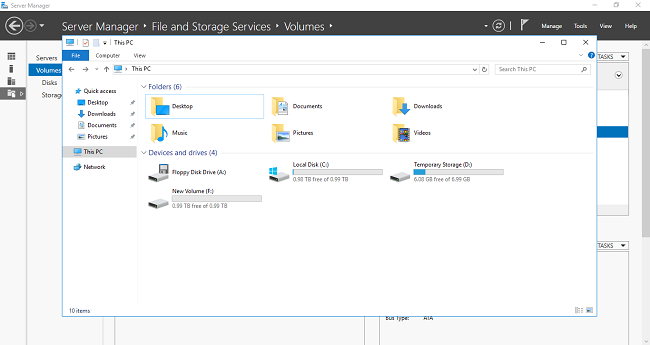 Right click on it and create a new volume and complete all the remaining steps. After that, in the Windows Explorer, go to "This PC" where you can see that we have this new volume that's just about 1 terabyte in size.