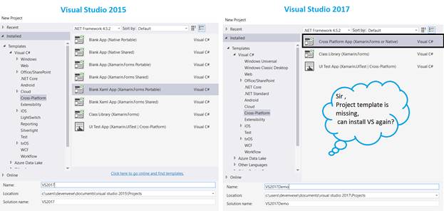 In this article, I will share Visual Studio 2017 Xamarin project template, Cloud Storage template, Xamarin Forms preview.