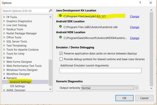 Go to Tools menu> select Options > Xamarin> Android Setting > change Java Development kit location.