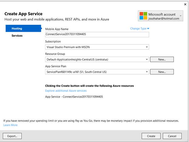 The Host in Cloud, Cross mobile Application is automatically integrated with Azure Cloud storage and create new project for Cloud.