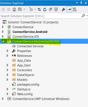 You can refer to the solution structure given below. Automatically, MobileAppService is added.