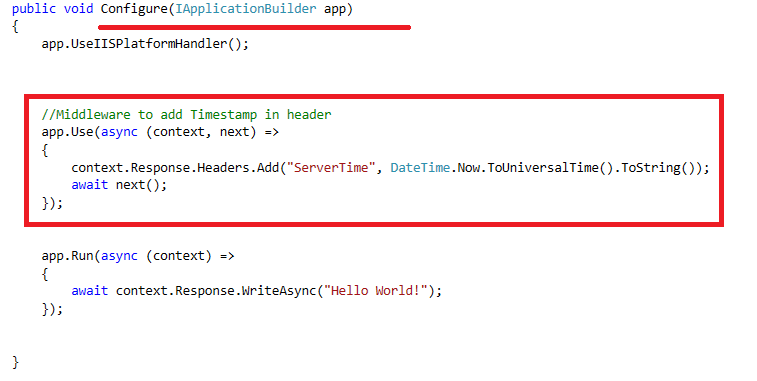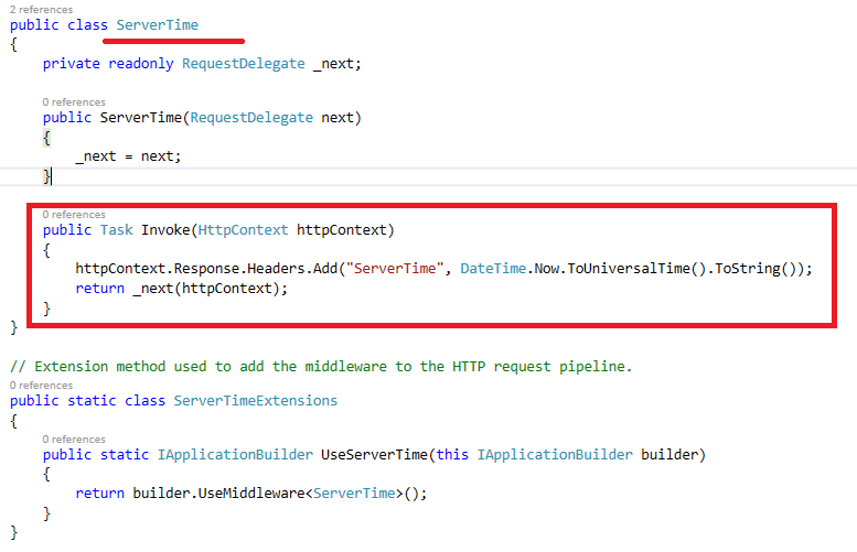 Separating this in a middleware class makes it just clean. So, I moved this code in a middleware class, ServerTime.cs: