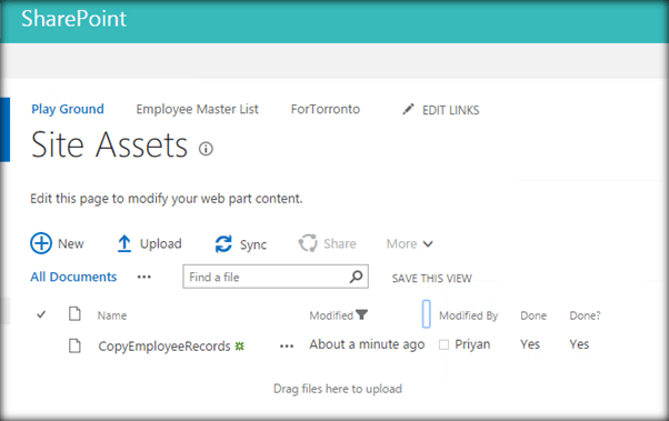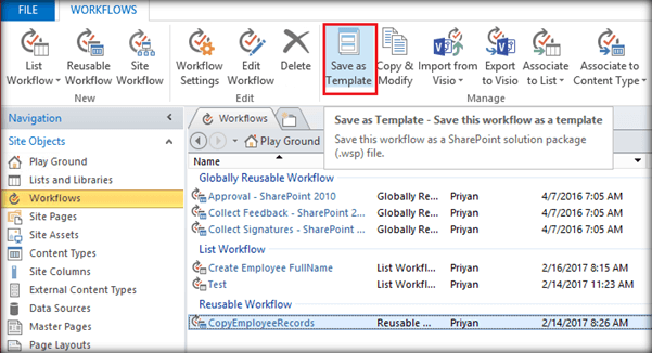 We can see the saved reusable Workflow in the site assets, as shown below.