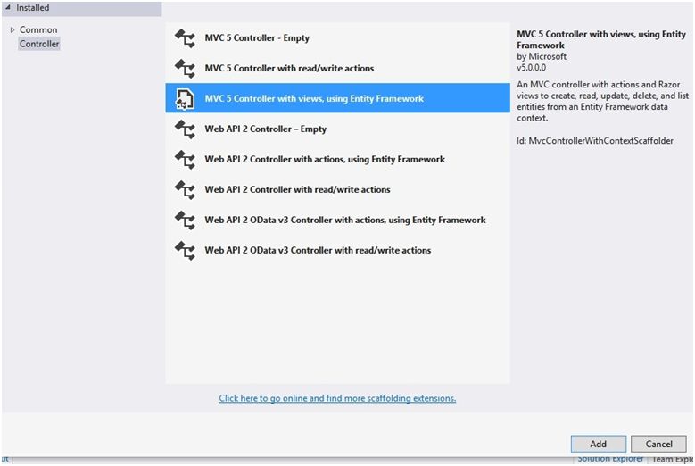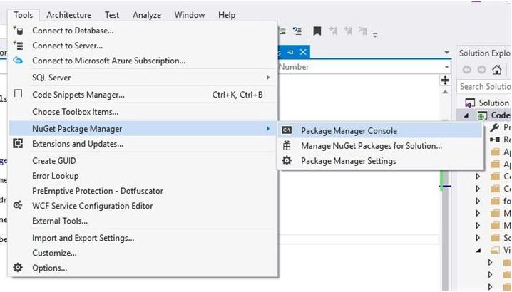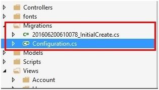 This command creates a migration folder with InitialCreate.cs and Configuration.cs file, where all the code is written for updating. We can see Solution Explorer, given below: