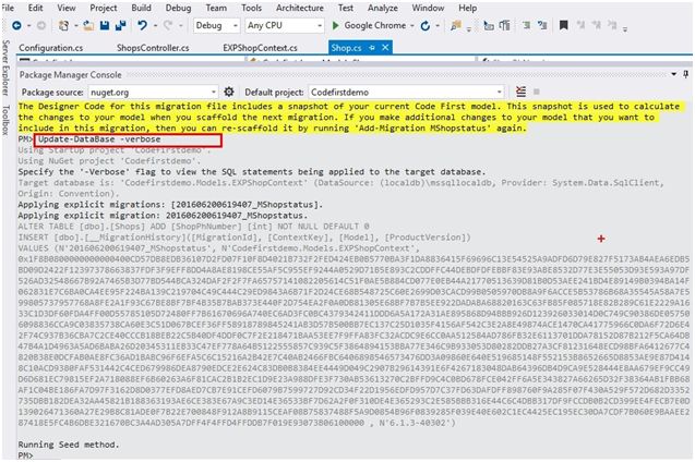 By using '-verbose', we can see in the package manager console what changes are there in the database. Build the project.