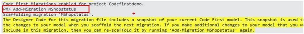 Therefore, we can see migration folder and another file is created with a name Mshopstatus.cs.