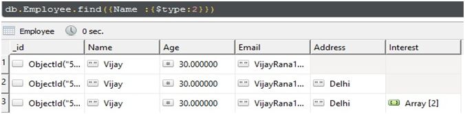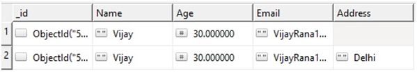 In the above document, we have Name, Email as String and Age as number.