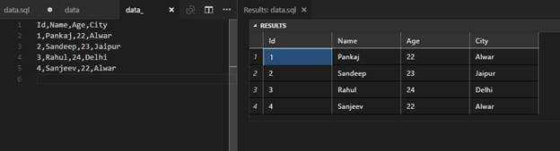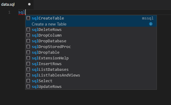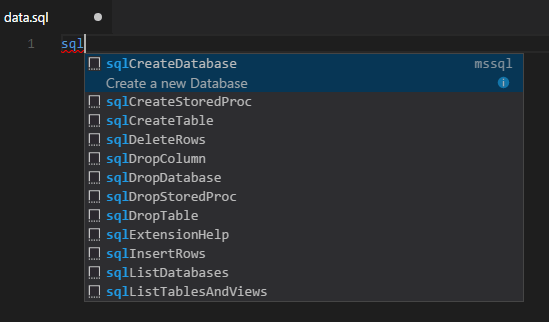 After successful installation, create a “data.sql” file in your editor and ensure that language mode for your file is “SQL”.