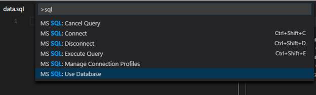 After creating the database, we use this database, so press “F1”, type “SQL” and select “Use Database” option.