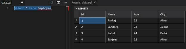 Now, write “Select * From Employee” query into your terminal and execute this query. When you execute the query, you will get the data into grid format.