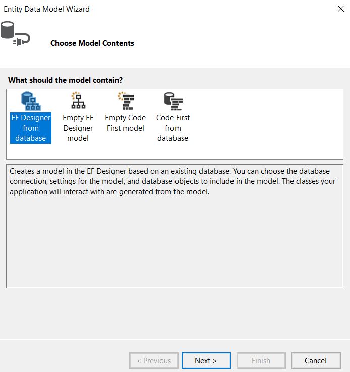 In Entity Data Model wizard, select EF Designer from the database and click Next.