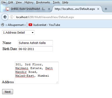 View Control - <asp:View ID= "vAddressDetail" runat= "server">