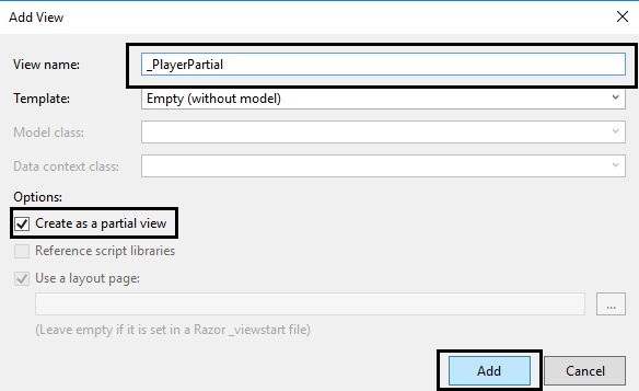 Replace the code of _PlayerPartial.cshtml page with the code given below.