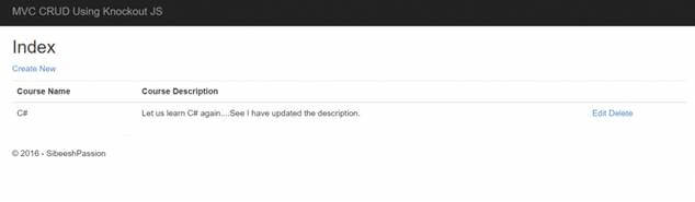 As I am working on a project, which uses Knockout for binding the Server data, a friend of mine requested me to create a CRUD application with Knockout, so that he can easily learn it. I just accepted his request and here, we are going to create an MVC CRUD application with the help of Knockout JS. I hope, you will like this.