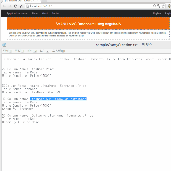 we can find the sample database and table creation query in code part. Before running this application kindly run the code part SQL script to create sample database and table with insert record for testing the output in our MVC dashboard page.