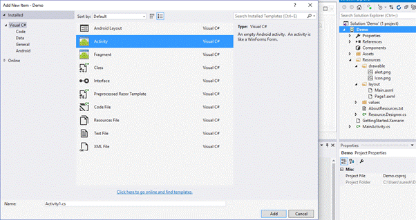 Now, add new activity file by right clicking on your project and adding a new activity, as shown below.