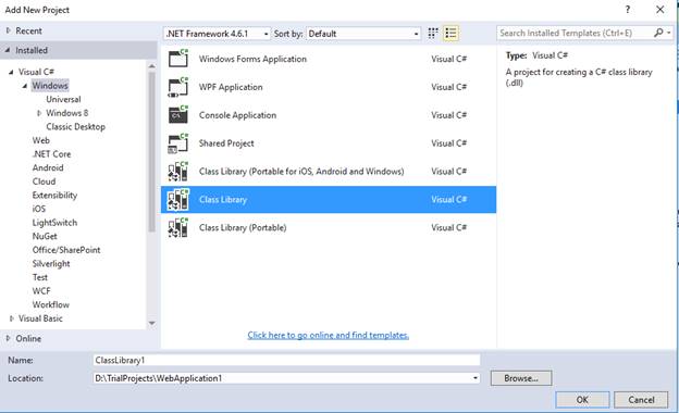 Notice that we are targeting .Net Framework 4.6.1.