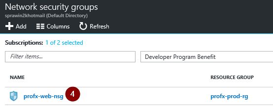 You will be taken to the Network Security Group blade where you see all the existing NSGs. As shown in the below screen, click on “Add” button.