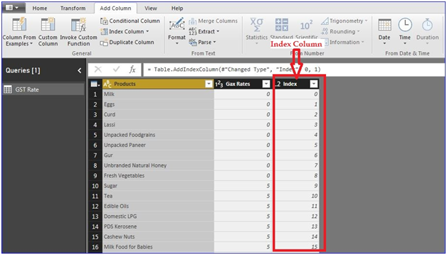 It reverses the rows in a table in such a way that the last row becomes first row. So, the last row displayed first. For working with reverse rows first we create an index column to the table as below. To know more about index column in Power BI you can refer my previous article