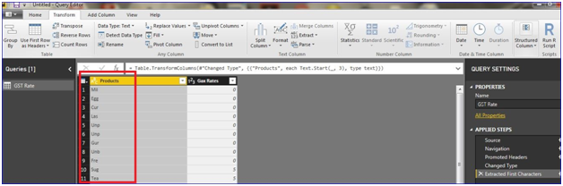 We can change the name of column by clicking on Use First Row as Headers. This option comes after clicking on table icon of table as below. After using this option the name of column become the column data as available. It is shown in below image.
