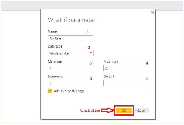 New Parameter is also called What-if Parameter or What if variable. It is included in Power BI with the August 2017 release. It is the part of Power BI data modeling available on Modeling tab. It is used as a variable value. Its value can be set by slicer. It is also used as a numeric slicer. Once what if variable is created we can use it throughout the table, report or slicer as it is a part of model. Its value can be dynamically changed.