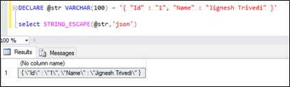 This function is introduced in SQL Server 2016. It escapes special characters and returns text with escaped character. It returns nvarchar(max) text with escaped special and control characters. Currently it can only escape JSON special characters.