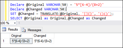 - SET @Changed = TRANSLATE(@Original, '[]{}', '()()');