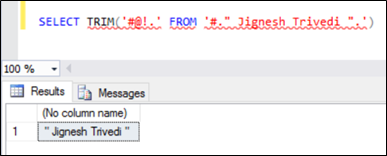 - SELECT TRIM('#@!.' FROM '#." Jignesh Trivedi ".')