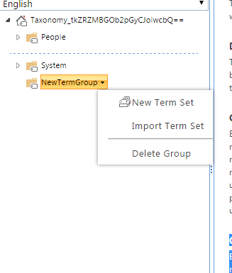 Click new term set and type a new name for this term set, as you want it to appear in the hierarchy.