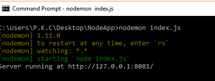 After successful installation of Nodemon, you can run any Node.js application using the “nodemon” command.
