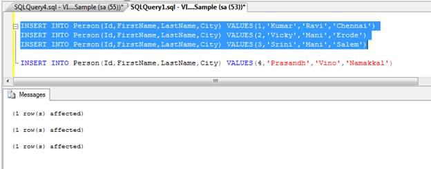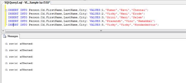 First we insert three records into “Person” table and it will be executed without error.