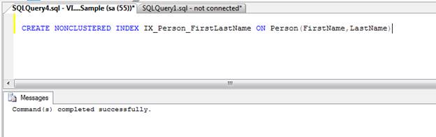 We created a Non Cluster Index for a combination of two columns; one for “FirstName,” and another one for “LastName” in Person table. This is called Composite Cluster Index.