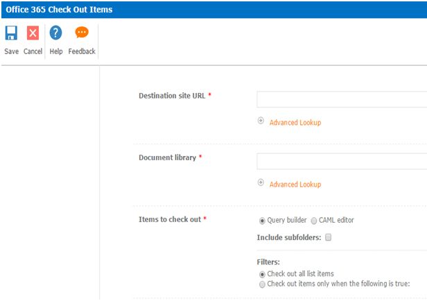 - Items to check out - Either query or provide the filter as in which items should be checked out.