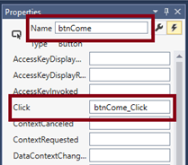 - <Button x:Name="btnCome" Content="Come" HorizontalAlignment="Left" Margin="540,86,0,0" VerticalAlignment="Top" Click="btnCome_Click" /> </Grid>