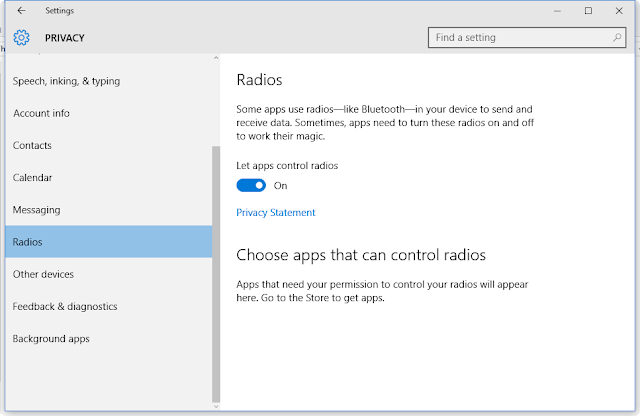Here are the steps to access the radios option in Windows 10. This is an option which should be set if you want the apps to control radios.